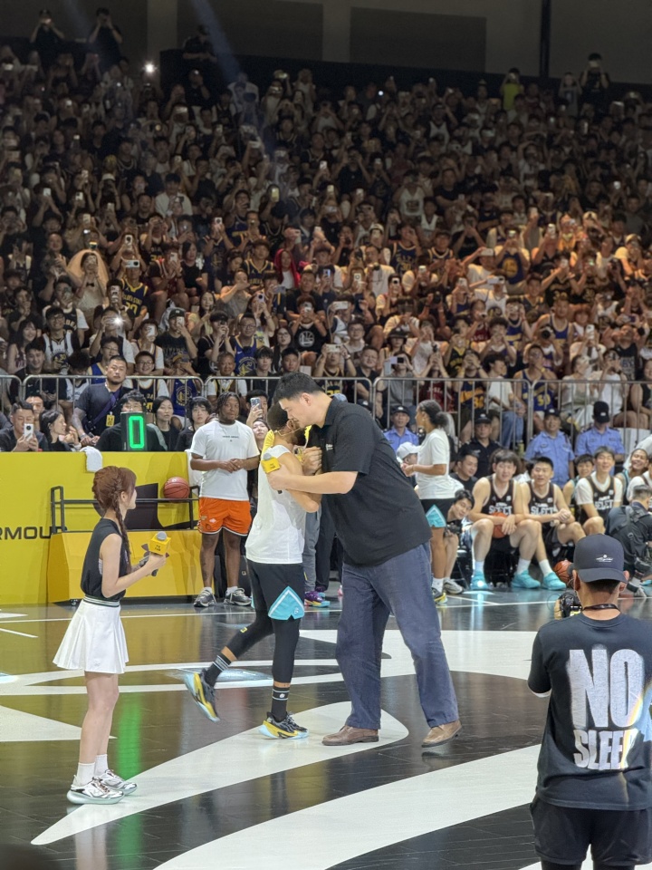 九游娱乐-两代人的青春!姚明中场上台致辞 与库里展现最萌体型差!