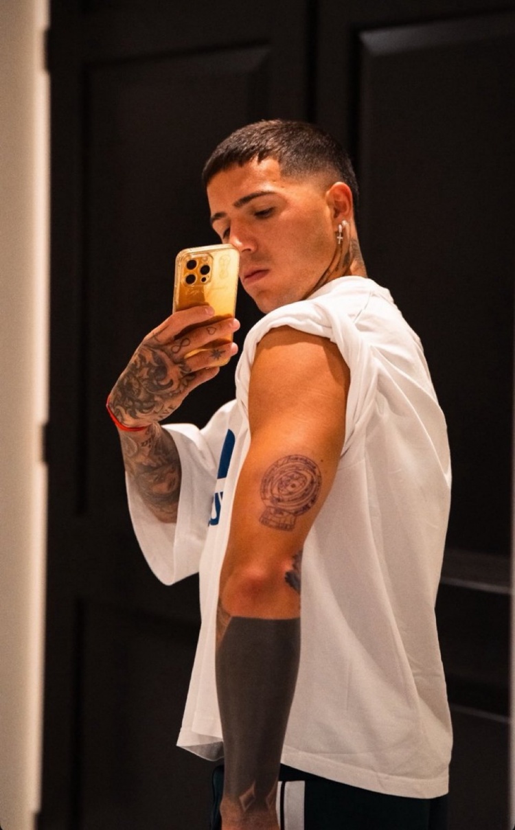 8月20日,切尔西中场恩佐·费尔南德斯通过社交媒体展示了其左臂新纹身——精致的世俱杯冠军奖杯图案,以永久方式铭刻球队的荣耀时刻。