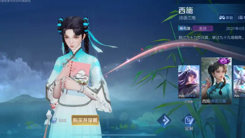 第三款就是西施的诗语江南,这款皮肤要说质量的话,也确实不差,但是这次加入限时点券商城,那就比较尴尬了。